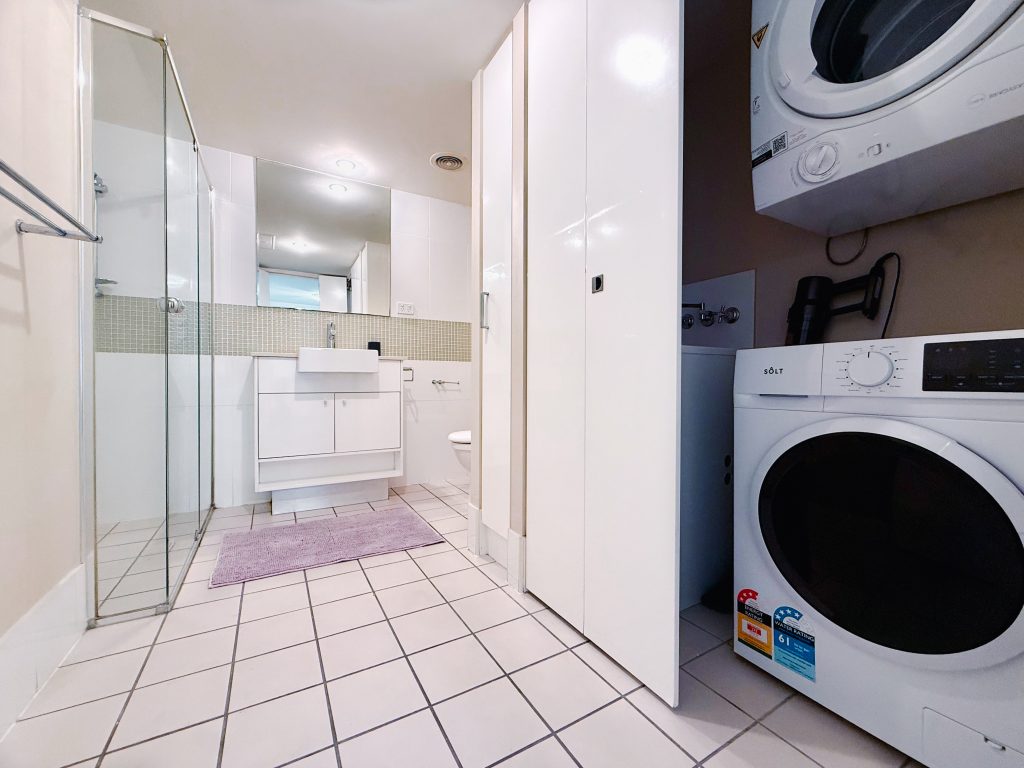 Within this luxury apartment there is a communal deck, swimming pool, heated spa, sauna room, gym and BBQ area.