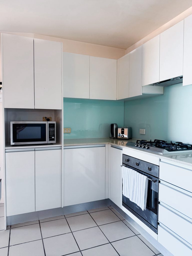 - Kitchen including cooktop, microwave, oven, fridge pantry and appliances