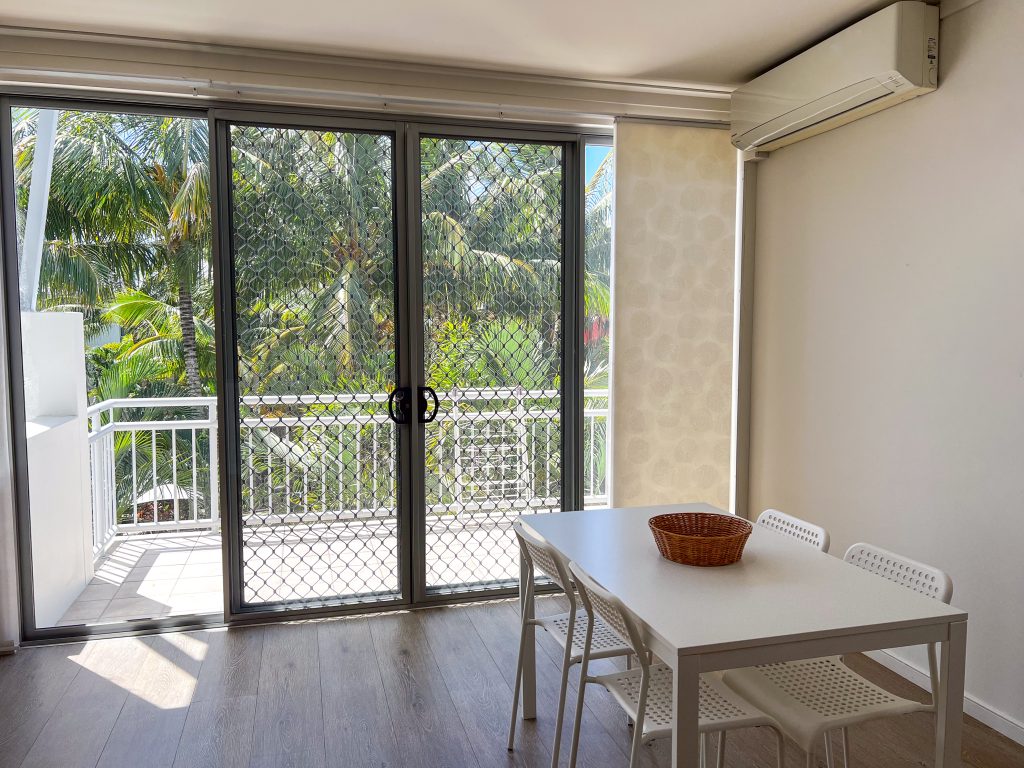 • A sunlit undercover balcony overlooking the complex facilities, garden palms and swimming pool