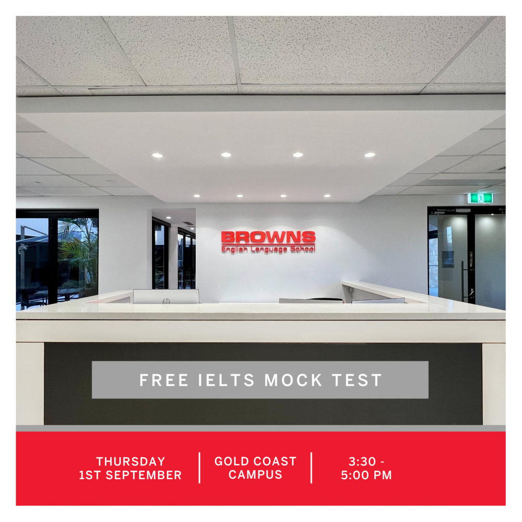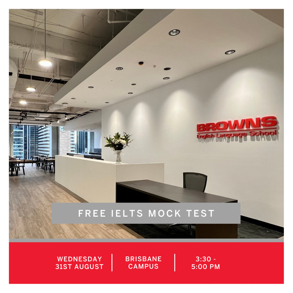 I look forward to seeing you at our Mock IELTS test in Brisbane on 31st August or the Gold Coast on 1st September. If you are not able to make it to our Brisbane or Gold Coast campus, you can take the free BROWNS Online Placement Test (BOPT) which includes a free personalised study plan based on your target IELTS score.