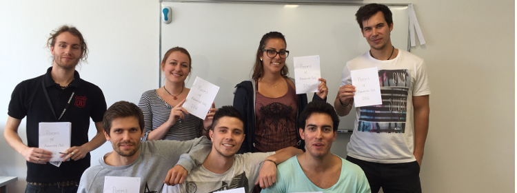 We have been working together on a class project, analysing different types of poetry from the 1600s to today’s English. We have studied many poetic structures including those with rhyme encompassing assonance and alliteration. From analysis and vocabulary building, the students created their own individual poems and worked together as a group to enhance each work. This has been made into a small booklet containing the collection of poetry of the Intensive General English – Advanced Class.
