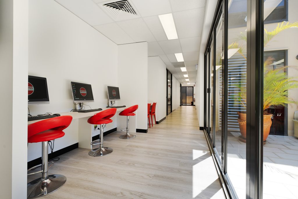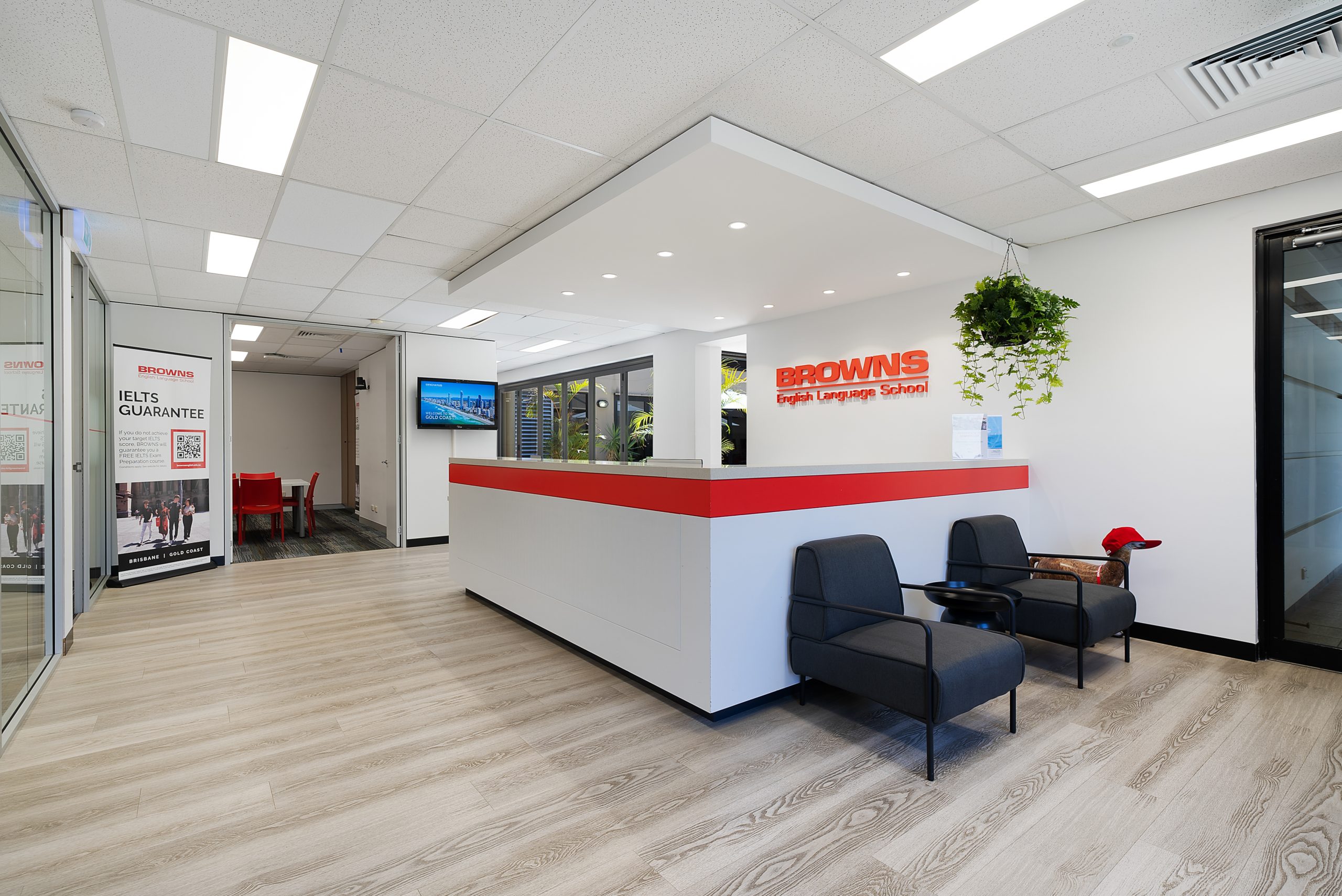 - School Reception area with sofas for students to relax during lesson breaks