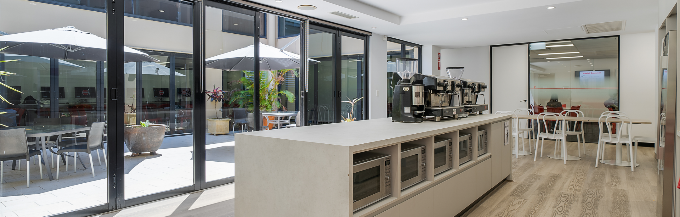 - Outdoor garden area with lunch tables where students can eat and socialise with their friends